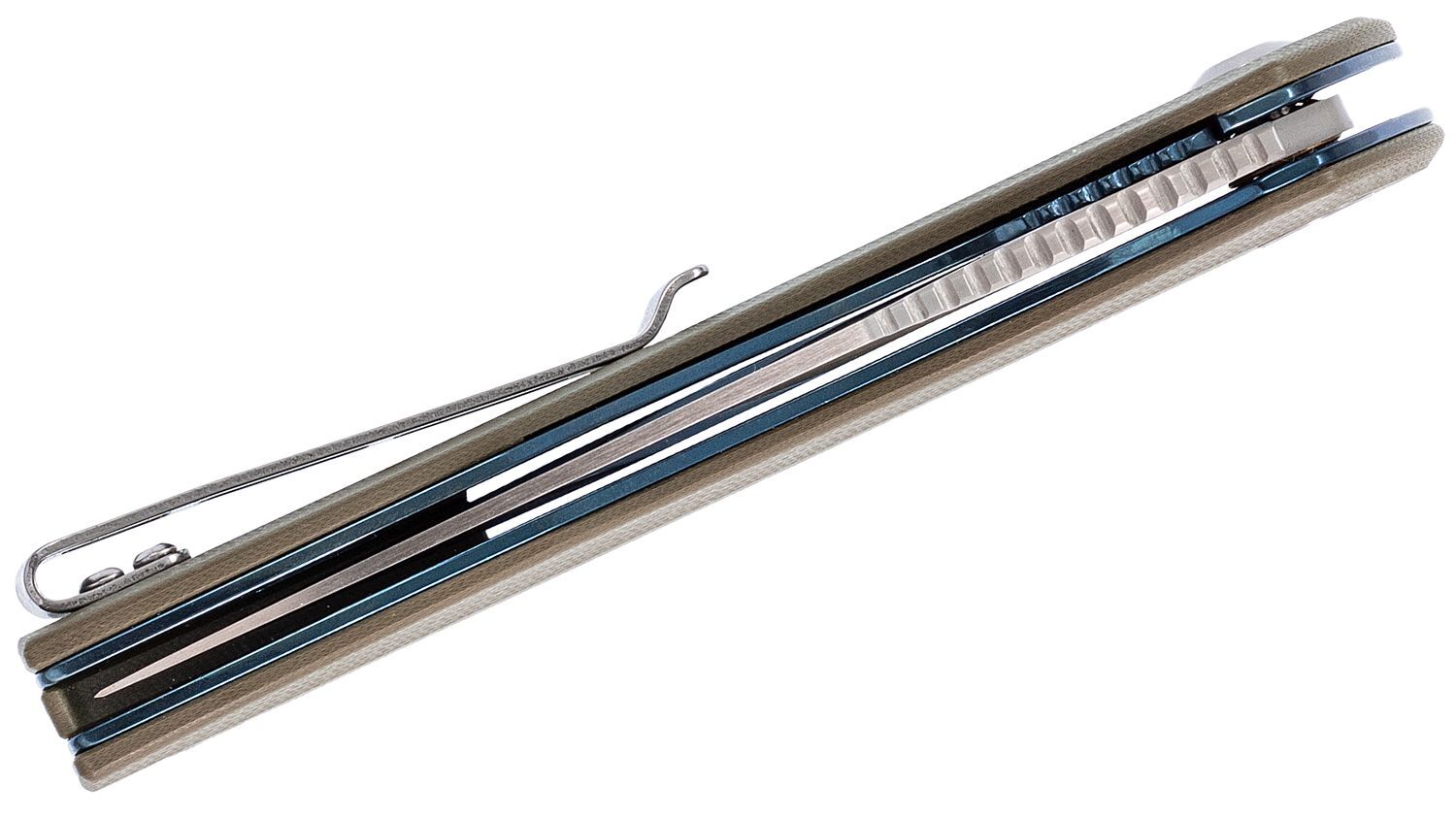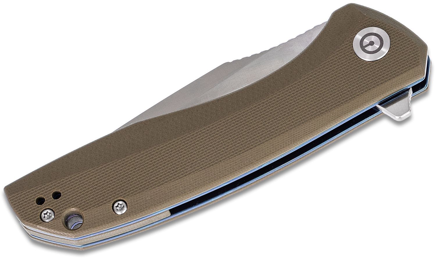 CIVIVI Backlash - het lemmet is gemaakt van roestvrij staal 9Cr18M0V. Het mes opent eenvoudig en gemakkelijk met één hand dankzij de Flipper. Het geopende mes wordt vergrendeld door de Liner Lock. Het handvat is gemaakt van G10-materiaal in zandkleur. Het mes heeft een koordgat en een tweepositieclip voor het dragen aan de zak. U kunt het naar behoefte aan de andere kant van het handvat verplaatsen.