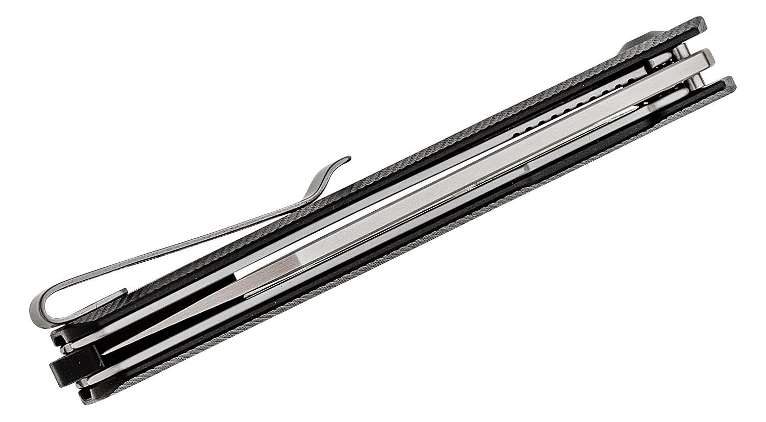 Het model Chronic is een mes met een elegant, gentleman-achtig ontwerp. Het heeft een slank profiel en is geschikt voor dagelijks dragen en gebruik. Het lemmet is gemaakt van roestvrij staal 9Cr18MoV met een Satin Finish. Het opent gemakkelijk met één hand via de Flipper. Het openen is soepel dankzij de lagers waarop het lemmet beweegt. Het geopende mes wordt betrouwbaar vergrendeld door de Liner Lock. Het handvat is gemaakt van G 10 materiaal, in zwarte kleur. De broekclip is tweepositioneel, zodat je hem naar de gewenste kant kunt verplaatsen. Hij is gemaakt van roestvrij staal en maakt een discrete en diepe, onopvallende draagwijze mogelijk.