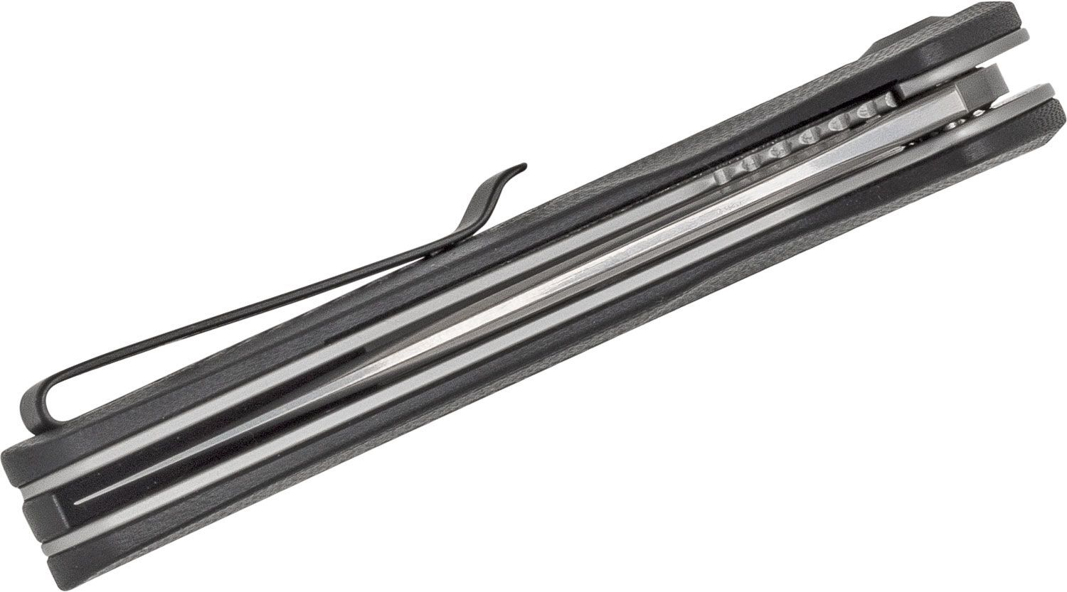 De Durus is een robuust mes voor dagelijks gebruik. Het lemmet is gemaakt van Damascus staal met een hardheid van 59-61 HRC. Het opent eenvoudig met een Flipper, met één hand. Het geopende mes wordt betrouwbaar vergrendeld door de Liner Lock. Het handvat is gefreesd uit zwart G10 materiaal. Het is versterkt met stalen liners die de nodige stevigheid bieden. Het heeft een koordgat voor het gebruik van een lanyard. De draagclip is zwart en is tweepositioneel, wat betekent dat je het naar wens kunt verplaatsen.