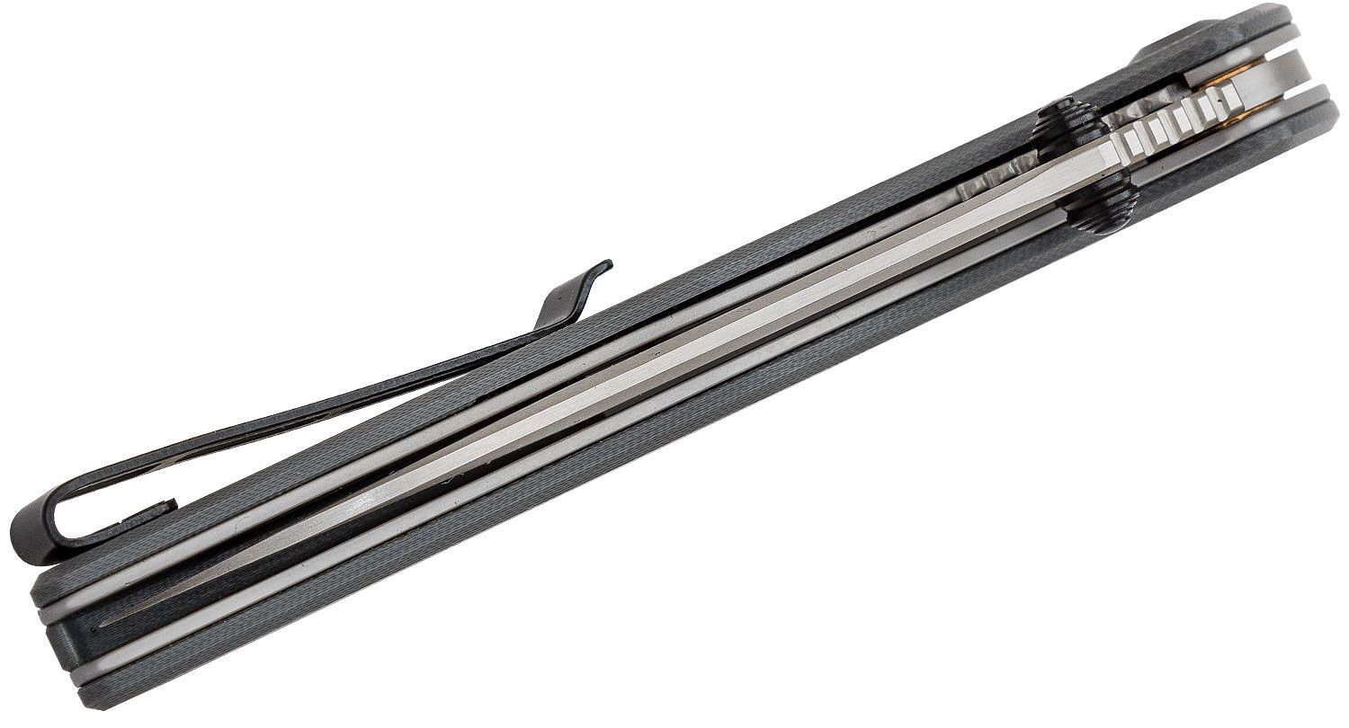 De Governor is een elegant, slank, licht en praktisch mes. Geschikt voor dagelijks gebruik. Als je een gereedschap wilt dat onopgemerkt blijft tijdens het dragen totdat je het nodig hebt, is de Governor ideaal. Het lemmet is gemaakt van gereedschapsstaal D2, (59-61HRC) met een Satin Finish. Het opent met een duimstud op het lemmet, met één hand en "loopt" op bronzen washers. Het geopende mes wordt vergrendeld door een Liner Lock. Het handvat is gemaakt van G10-materiaal, in grijze kleur en versterkt met stalen liners. Het handvat heeft een koordgat en een clip voor draagcomfort in de zak. De clip is tweezijdig, zodat je het gemakkelijk aan elke kant kunt bevestigen. Het biedt een discrete en subtiele draagwijze. Uitstekende prijs-kwaliteitverhouding.