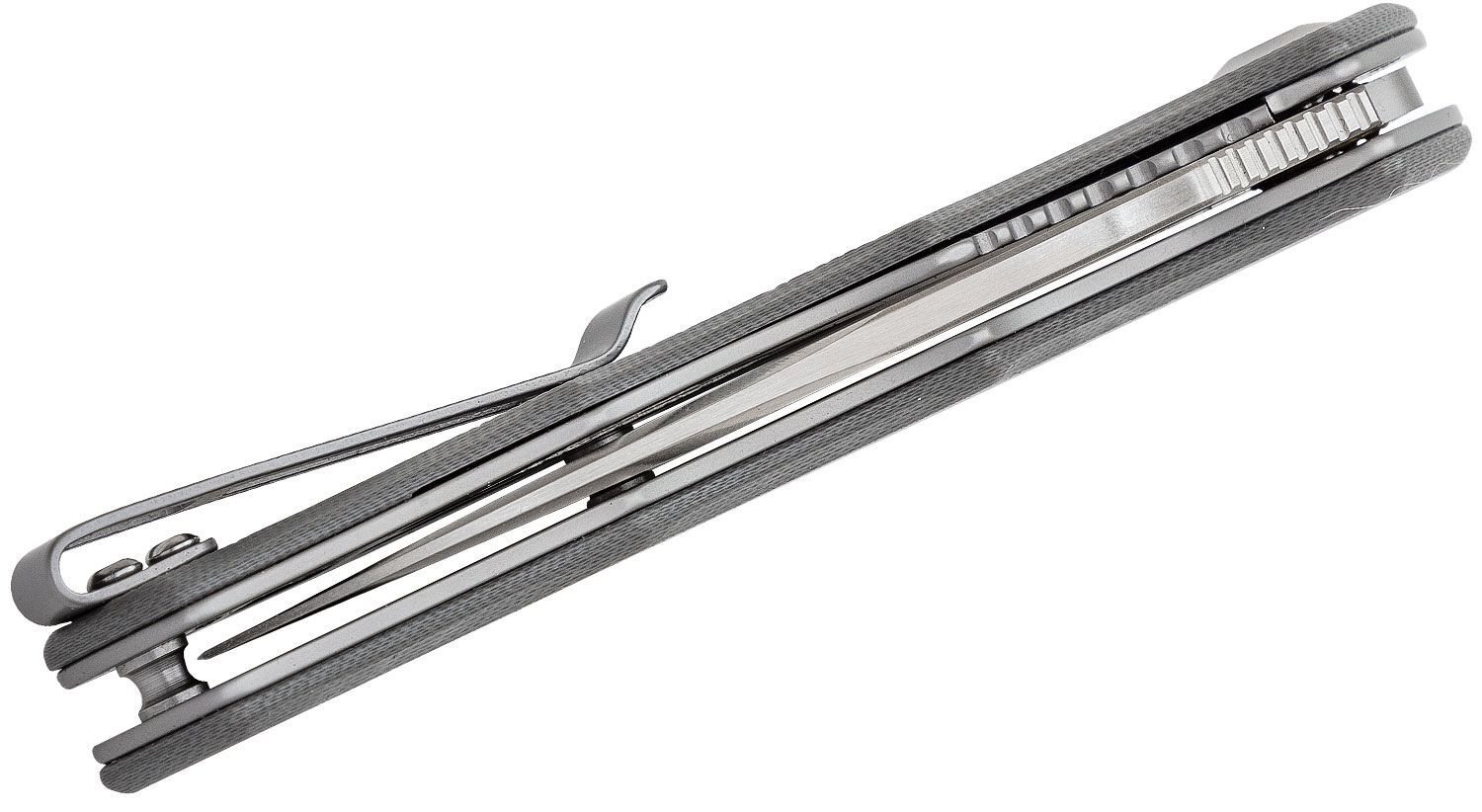 Het model Little Fiend kan uw dagelijkse hulp zijn. Het lemmet heeft een holle slijping en is gemaakt van gereedschapsstaal D2 met een hardheid van 59-61HRC en een Satin afwerking. Het opent door middel van een uitsparing in het lemmet met de duim, of sneller met de Flipper. Het geopende mes wordt vergrendeld door een Liner Lock. Het handvat is gemaakt van G10 materiaal, in grijze kleur, versterkt en verstevigd met stalen liners. Het heeft een koordoog en een tweepositieclip voor het dragen aan de broek. Dit maakt discreet en onopvallend dragen mogelijk.