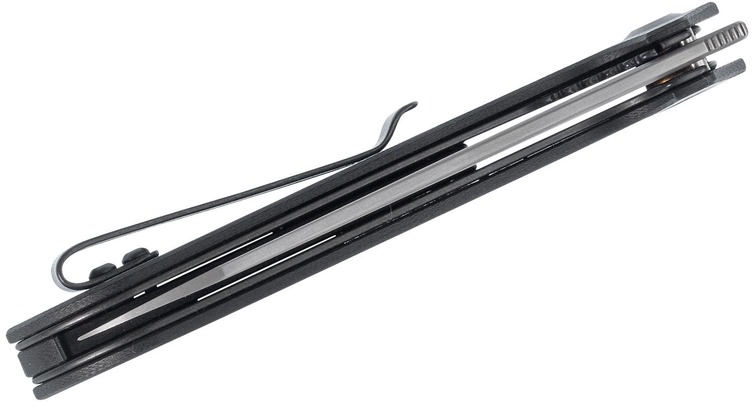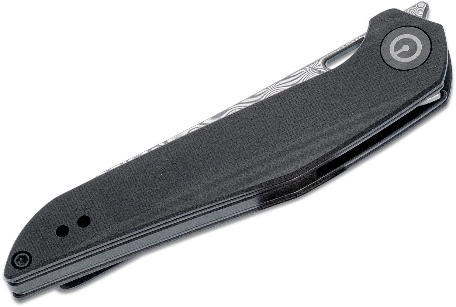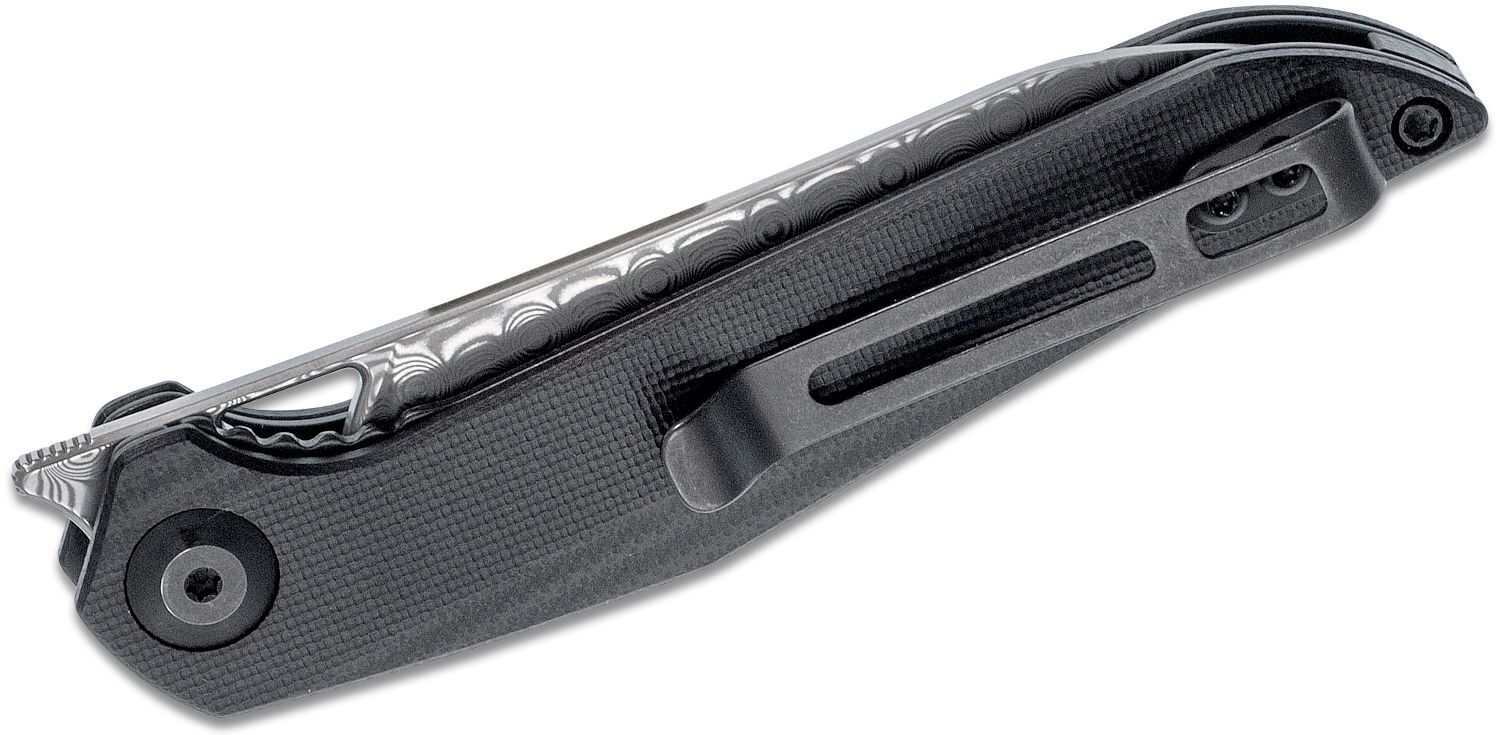 Het lemmet is gemaakt van damascus staal. Het opent met een horizontale Flipper, wat niet voor iedereen geschikt is, maar het is slechts een kwestie van wennen. Het geopende mes wordt absoluut betrouwbaar vergrendeld door de Liner Lock. Het handvat is versterkt met stalen liners. Het is gemaakt van Tan G 10 materiaal. De broekclip is tweepositioneel, donker en biedt een discrete, diepe draagwijze.