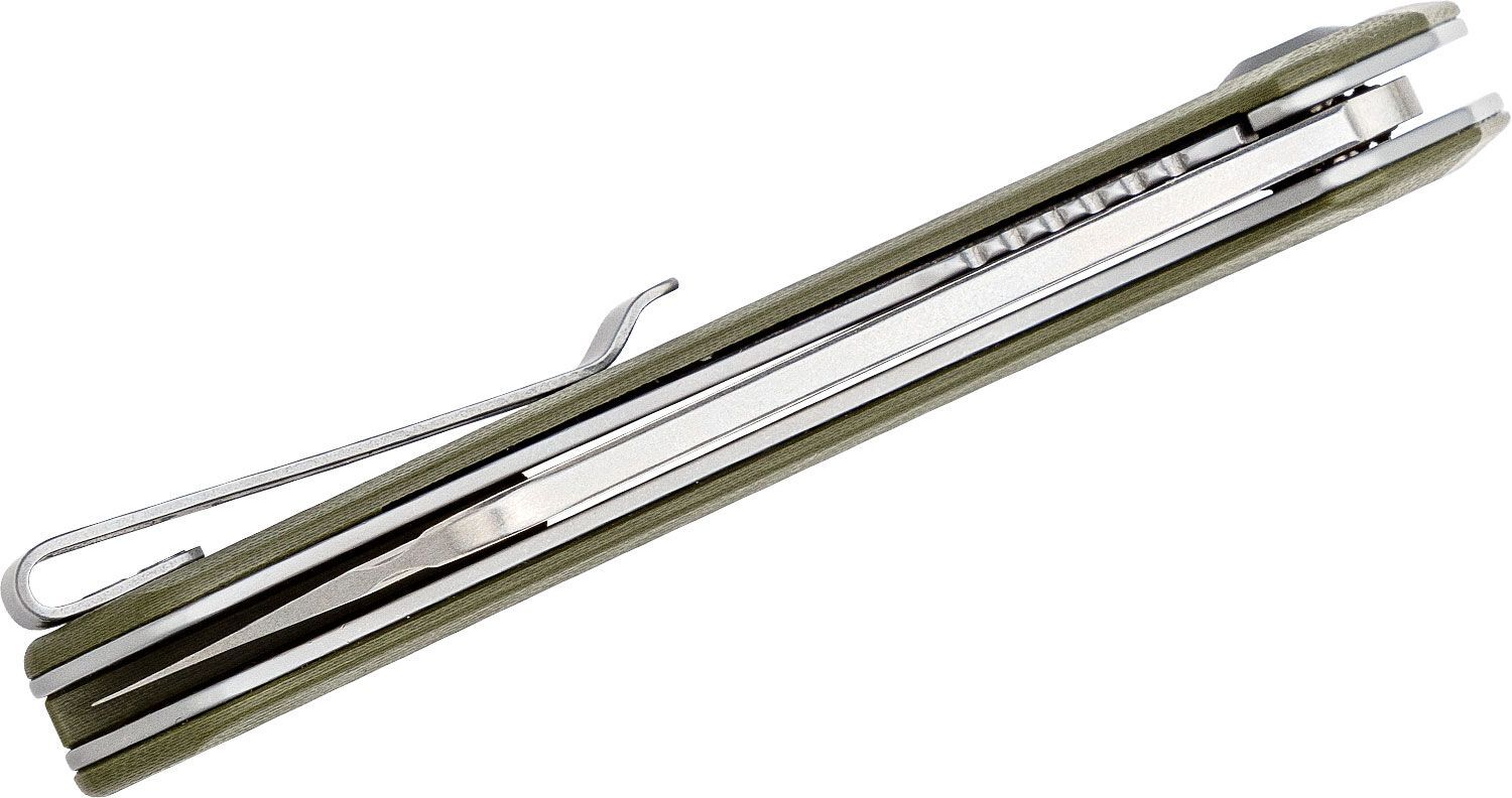 Het lemmet is gemaakt van roestvrij staal 9Cr18MoV (58-60HRC) met een Stone Wash afwerking. Het opent gemakkelijk met een Flipper. Het geopende lemmet wordt betrouwbaar vergrendeld door de Liner Lock. Het handvat heeft schalen gemaakt van groene G-10. Het handvat heeft een gat voor het gebruik van een koord. De clip kan aan beide zijden van het handvat worden bevestigd, waardoor het ook geschikt is voor linkshandigen.