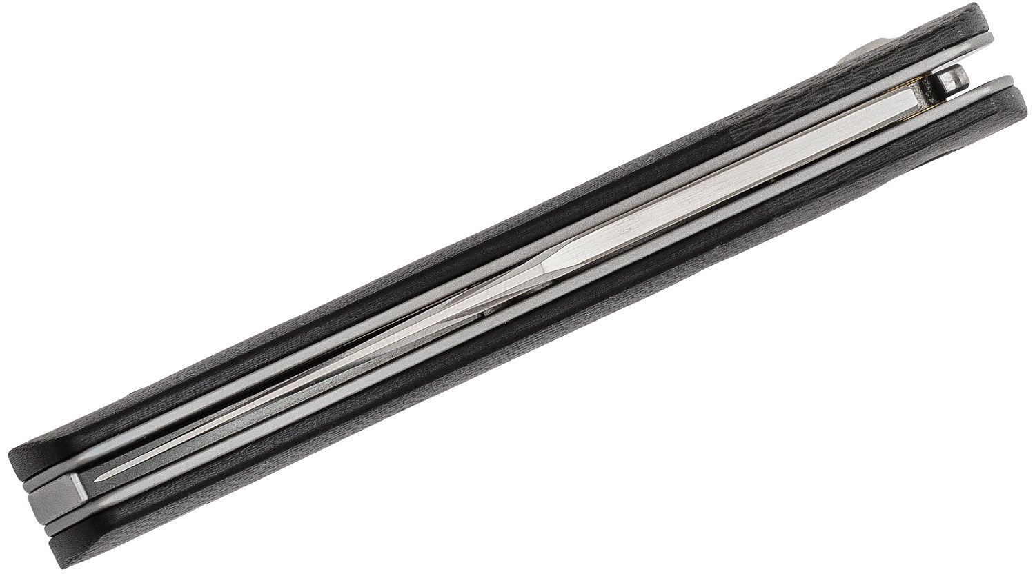 De Rustic Gent is een heren zakmes met een klassiek ontwerp. Het lemmet is gemaakt van D2 staal en heeft een Satin Finish. Het opent gemakkelijk, maar vereist het openen met twee handen. Dit gaat soepel dankzij de bronzen washers waarop het lemmet "glijdt". Het geopende mes wordt vergrendeld door een Back Lock. Het handvat is gecombineerd. Gemaakt van zwart G10 materiaal en koolstofvezel.