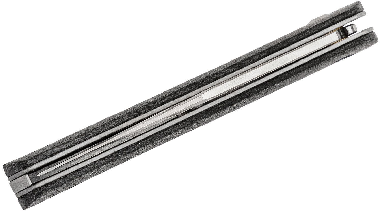 De Rustic Gent is een heren zakmes met een klassiek ontwerp. Het lemmet is gemaakt van D2 staal en heeft een Satin Finish. Het opent gemakkelijk, maar vereist een tweehandsopening. Dit gaat soepel dankzij de bronzen washers waarop het lemmet "rijdt". Het geopende mes wordt vergrendeld door een Back Lock. Het handvat is gecombineerd. Gemaakt van zwarte micarta en koolstofvezel.