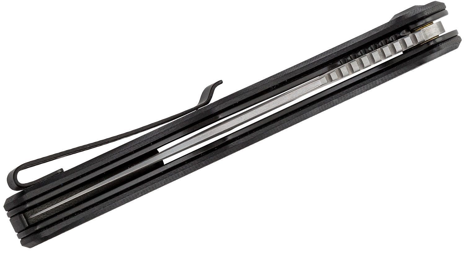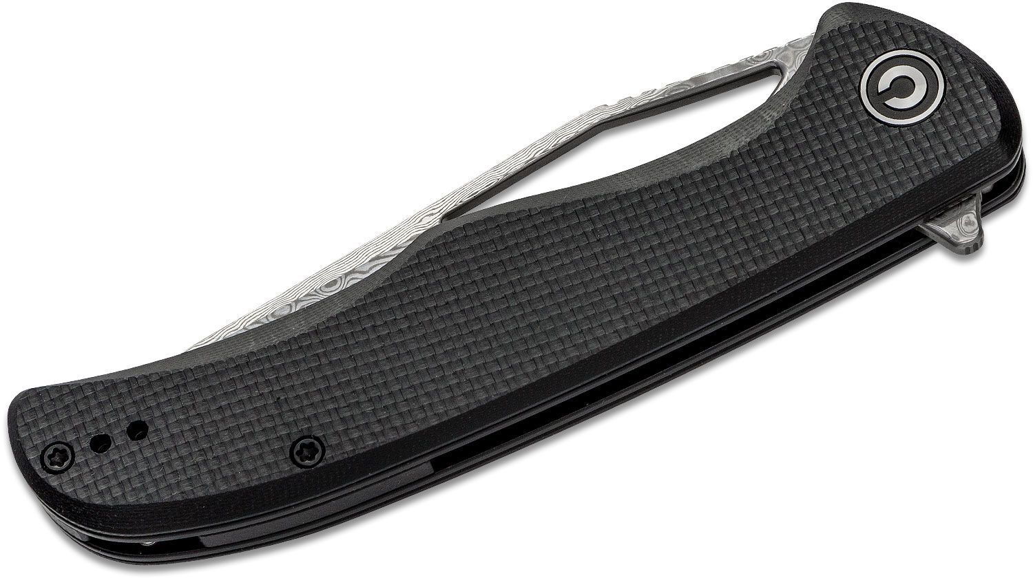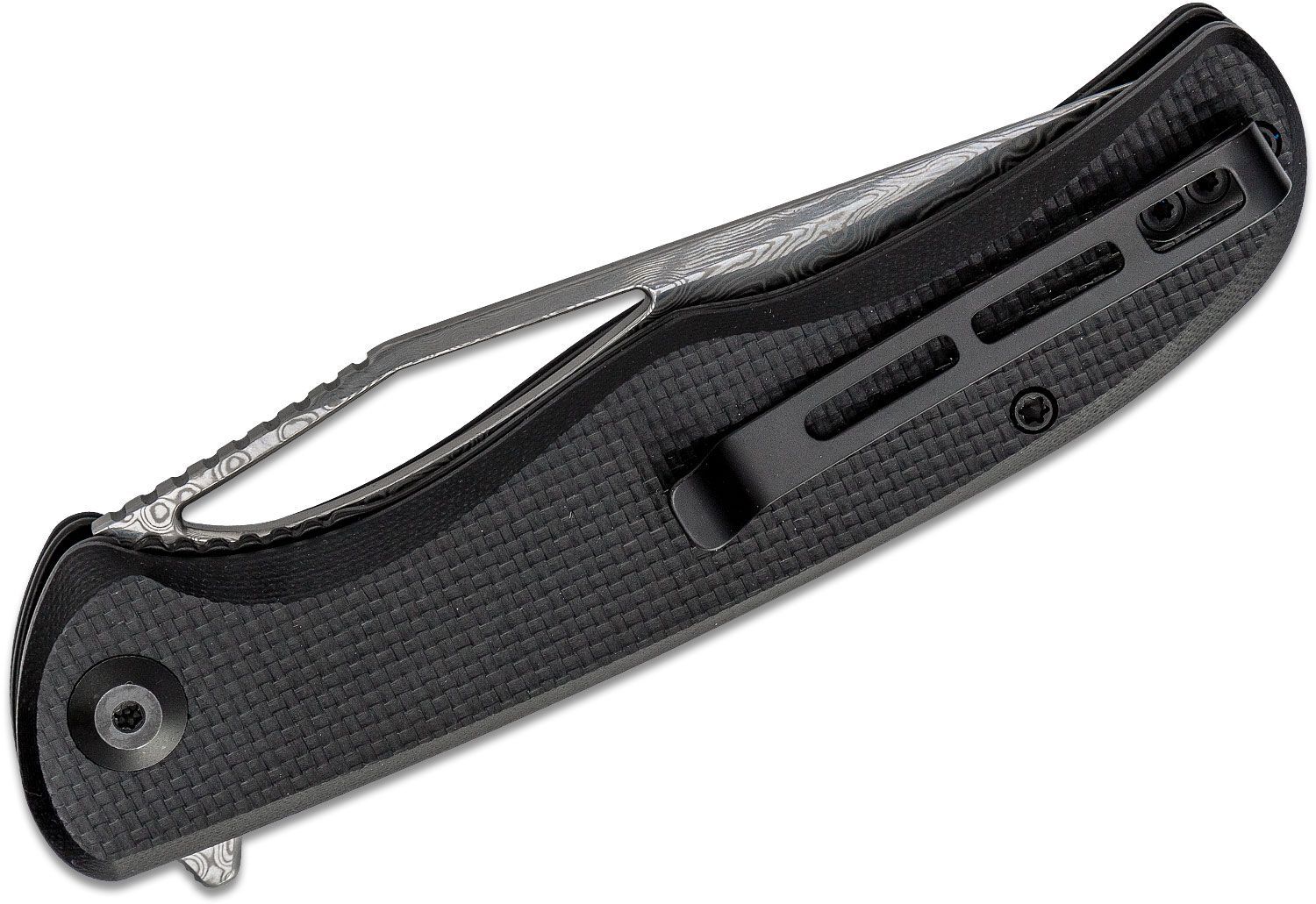 Civivi Shredder - een slank, vouwmes met een buitengewoon interessant ontwerp. Het lemmet is gemaakt van Damascus staal. Het opent handmatig, via een opening in het lemmet, of met een Flipper, met één hand. Het geopende lemmet wordt vergrendeld door een Liner Lock. Het handvat heeft schalen gemaakt van G 10 materiaal, in zwarte kleur. De clip voor bevestiging is zwart en is tweepositioneel, zodat je hem naar behoefte kunt verplaatsen. Het biedt comfortabel, discreet en onopvallend dragen aan een broek.