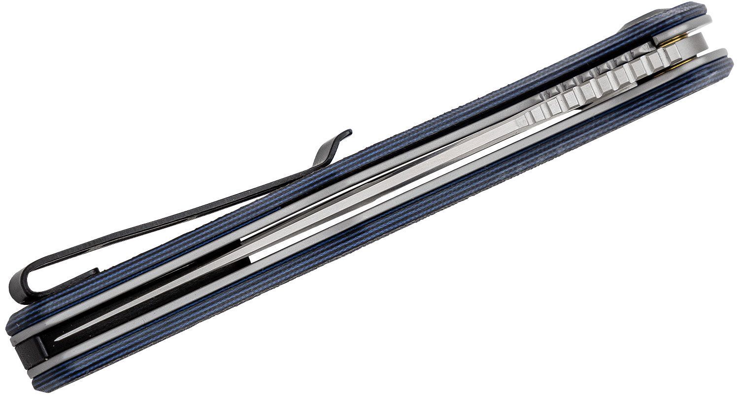 Civivi Shredder - een slank, inklapbaar mes met een buitengewoon interessant ontwerp. Het lemmet is gemaakt van gereedschapsstaal D2 met een Satin afwerking. Het opent handmatig, via een opening in het lemmet of met een Flipper, met één hand. Het geopende lemmet wordt vergrendeld door een Liner Lock. Het handvat heeft schalen gemaakt van G10 materiaal, in zwart en blauw. De clip voor bevestiging is zwart en is tweepositioneel, zodat je hem naar behoefte kunt verplaatsen. Het biedt comfortabel, discreet en onopvallend dragen aan de broek.