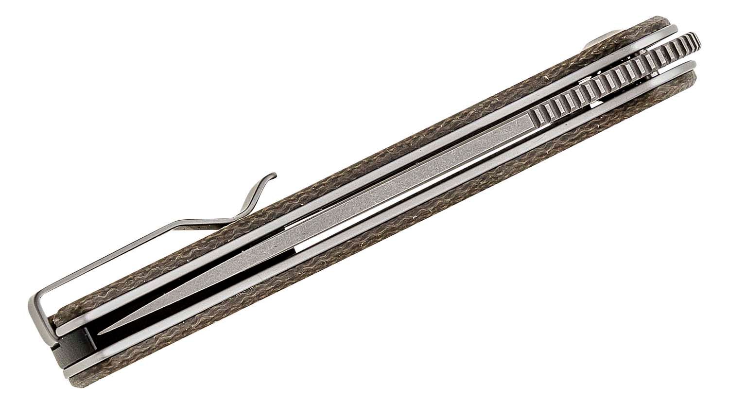 Dit mes Stylum is ontstaan dankzij de samenwerking van CIVIVI met ontwerpers bij Ferrum Forge Knife Works. Het heeft een slank lemmet en een relatief eenvoudig handvat dat tijdens gebruik goed in de hand ligt en een praktische zakclip heeft voor draaggemak. Het handvat is gemaakt van stevig en hoogwaardig Micarta-materiaal. Het lemmet heeft een Stonewash afwerking.