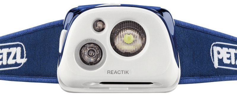 De compacte en slimme oplaadbare LED-hoofdlamp Petzl Reactik Blue E92 met automatische vermogensaanpassing dankzij de Reactive Lighting-technologie. Met een vermogen van 220 lumen en een bereik van 60 meter.