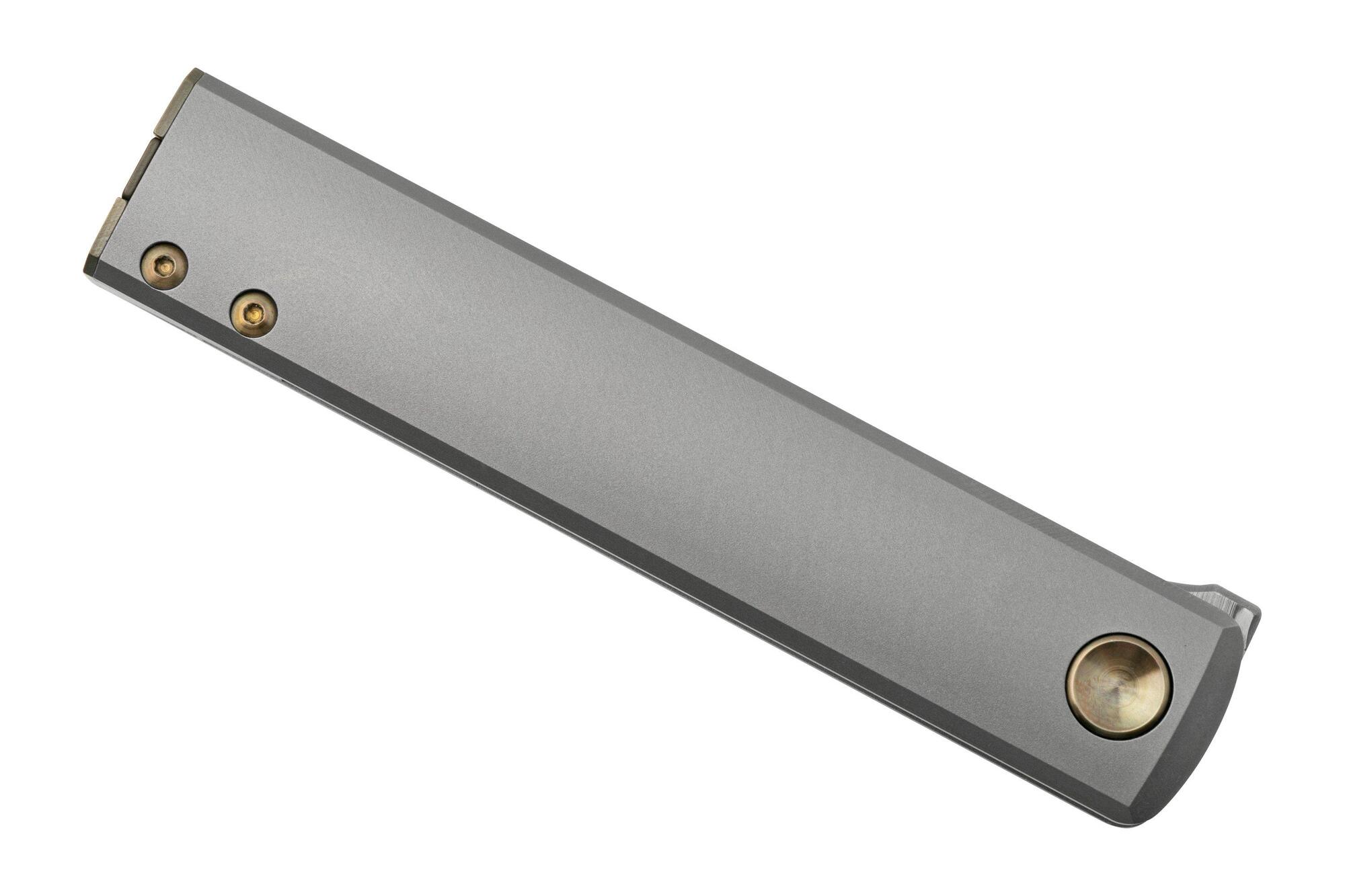 Het lemmet, gemaakt van aantrekkelijk damascus staal, opent met een subtiele flipper en wordt in de open positie gehouden door een Liner Lock. Deze versie wordt geleverd met een titanium handvat. De titanium clip is perfect voor draagcomfort in de zak.