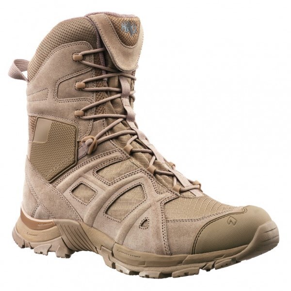 Hoge tactische schoenen HAIX® uit de Black Eagle-serie. Ze zijn ontworpen met de nadruk op comfort tijdens het lopen, zelfs onder zware omstandigheden. De schoenen blinken uit in hun lichtheid, comfort, dynamiek en schokabsorptie. Ze zijn zeer ademend, waterdicht, antistatisch en bestand tegen olie en benzine, waardoor ze ook geschikt zijn als werkschoenen voor risicovolle werkplekken. De speciale anatomische, antibacteriële, ademende en sneldrogende inlegzool houdt uw voeten de hele tijd comfortabel.