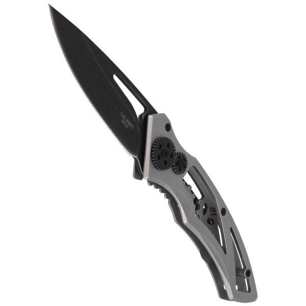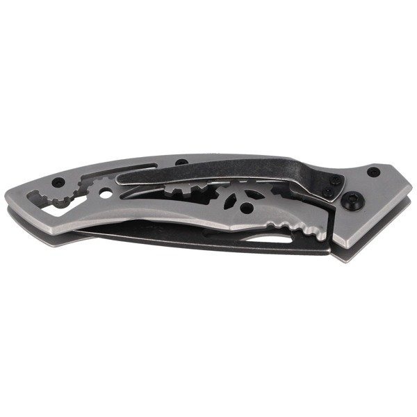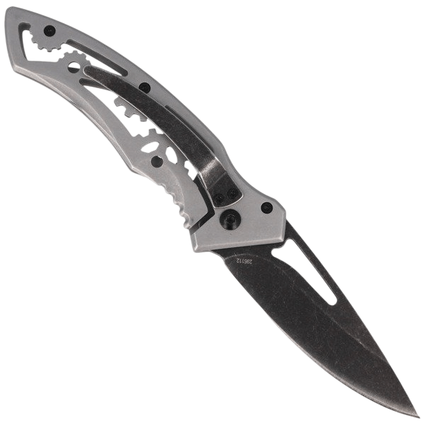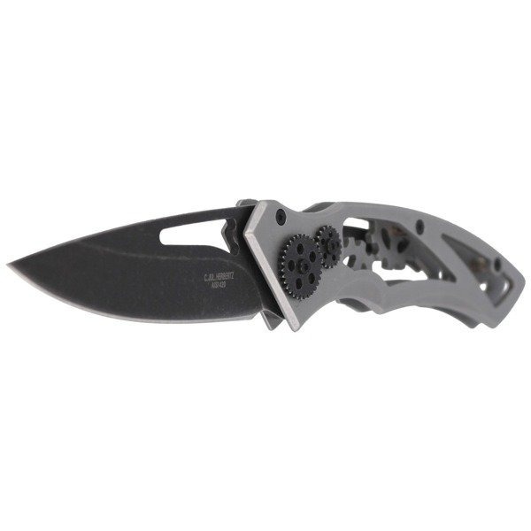 Zakmesmes Herbertz 295112 in mechanische uitvoering, geschikt voor verzamelaars. Het lemmet met gladde snede is gemaakt van roestvrij staal 420 en heeft een Stonewash afwerking. Het mes opent handmatig via een opening in het lemmet en wordt vergrendeld door een Framelock. Het handvat is geskeletteerd, met een tandwieldesign, gemaakt van roestvrij staal en heeft een matte grijze afwerking. Voorzien van een metalen broekclip.