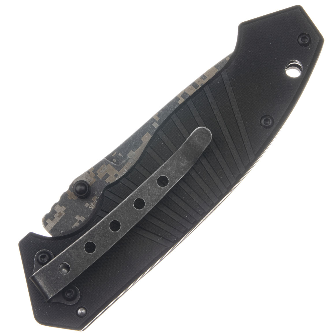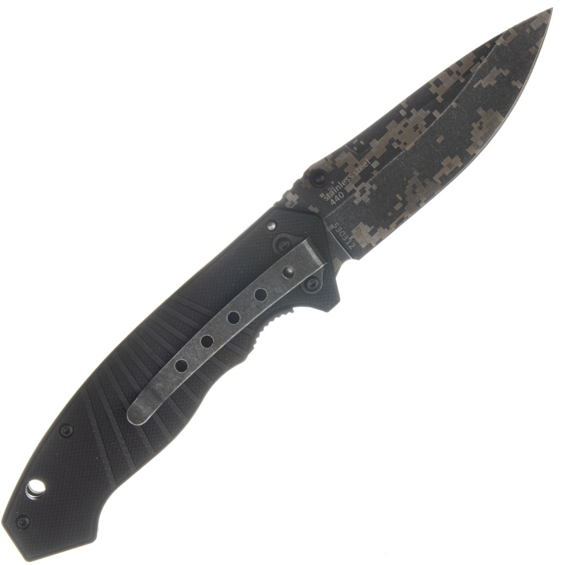 Een ander model uit de Top Collection van fabrikant Herbertz, praktisch voor dagelijks gebruik, outdoor - ligt goed in de hand en is gemakkelijk te hanteren. Het lemmet met gladde snede is gemaakt van roestvrij staal 440 in camouflage-uitvoering, en wordt na openen vergrendeld door een Liner Lock. Het zwarte handvat is gemaakt van duurzaam G10-materiaal, met een clip voor aan de riem. De uitrusting wordt aangevuld met een nylon hoes en een praktische plastic doos.
