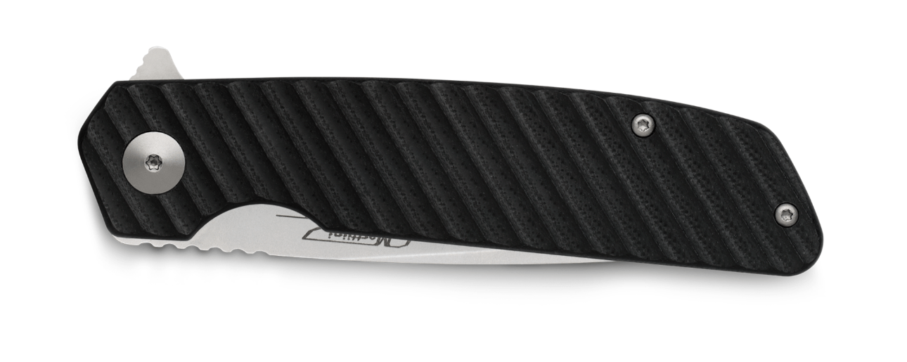 Het vouwmes Marttiini MEF8 heeft een lemmet van roestvrij staal AISI 440 en een eenvoudig openingsmechanisme. De veiligheid wordt gewaarborgd door een Liner Lock. Het handvat is gemaakt van zwart G10 met een gegroefd patroon voor betere grip. Er is ook een praktische riemclip inbegrepen.