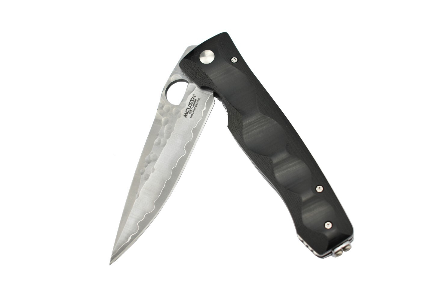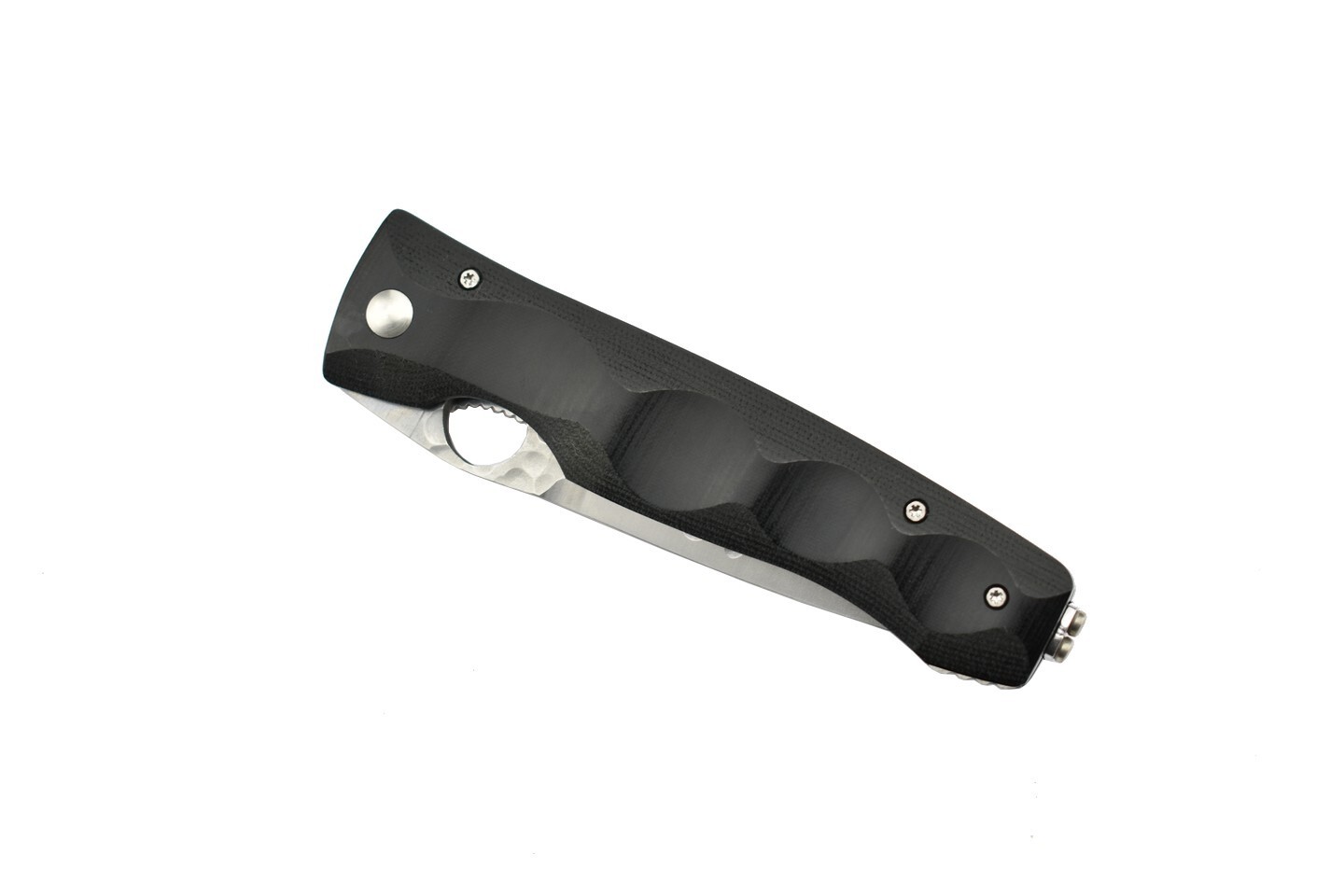 Het zwarte handvat is gemaakt van Micarta, met groeven die zorgen voor een stevige grip op het mes. Micarta is een uiterst stabiel materiaal dat bestand is tegen hitte, vocht en veel chemicaliën.