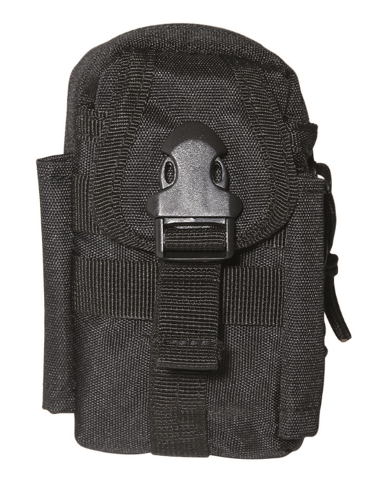 Mil-Tec COM. Koppeltasche in zwart, gemaakt van 100% polyester gecoat met PVC en gevoerd met polyester. Ideaal voor mobiele telefoons, camera's, MP3-spelers, enzovoort.