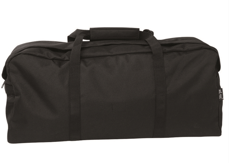 Grote praktische handbaggage tas Mil-Tec Einsatztasche 600D PES in zwart, gemaakt van 100% polyester met een gewatteerd handvat. Met één groot vak met ritssluiting en 2 binnenzakken met klittenbandsluiting. Met stevige bodem.