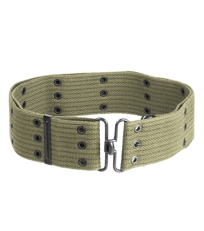 Tactische riem Mil-Tec US IMP in olijfgroen, gemaakt van 100% katoen met een metalen sluiting met 3 gaten. Met een breedte van 5,5 cm en een lengte van 122 cm. Geleidelijk verstelbaar.