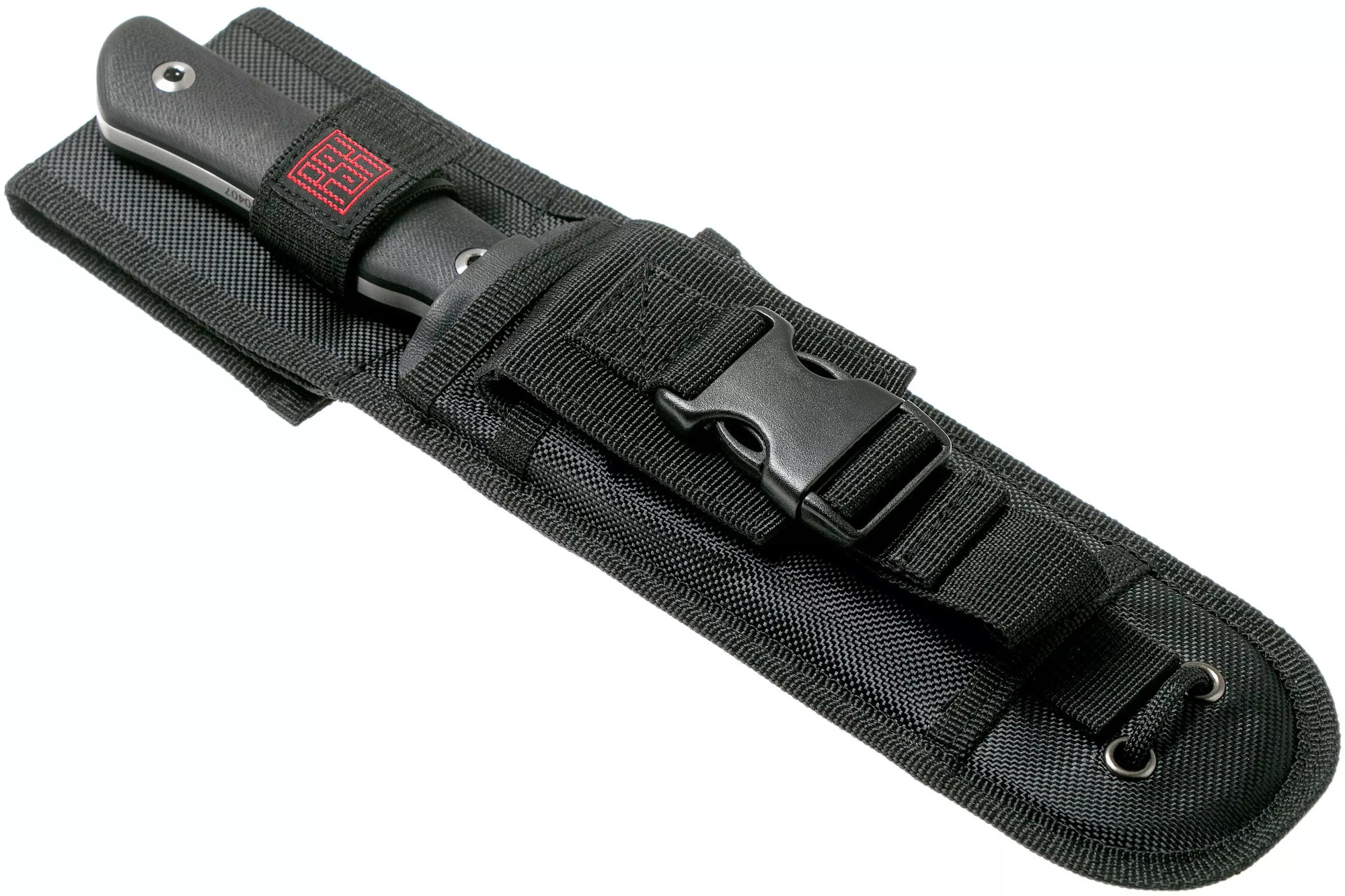 De kwaliteit van dit mes eindigt niet bij het mes zelf, ook de schede is geweldig. Het is een kydex schede die in een nylon hoes is geplaatst en het mes past er perfect in.