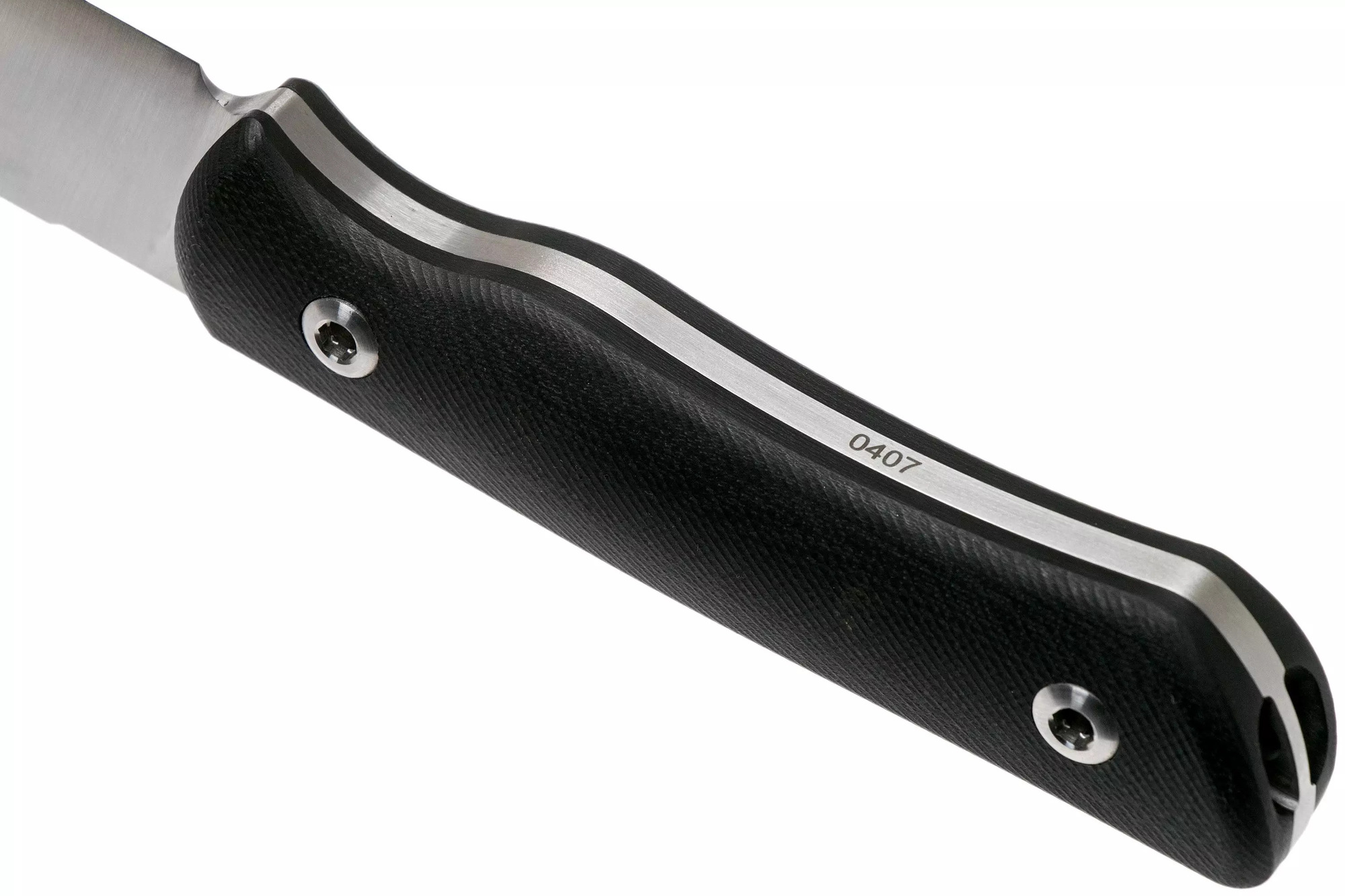Het lemmet is gemaakt van Sandvik 14C28N staal. Dit is een roestvrij staal uit Zweden. Het is behoorlijk hard, gemakkelijk te slijpen en behoudt toch goed zijn scherpte.