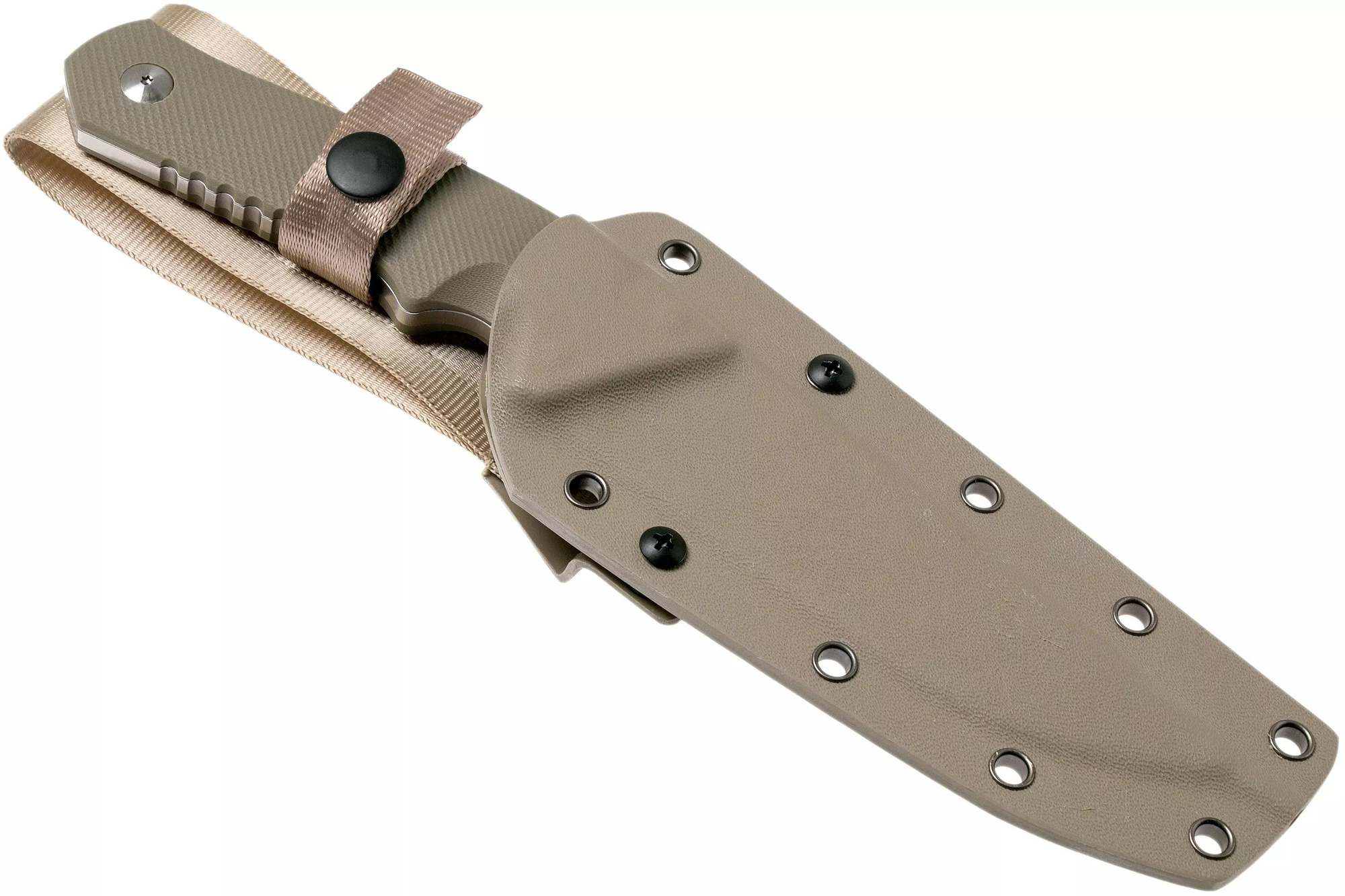 Het handvat is gemaakt van duurzaam G10 materiaal en biedt een goede grip.