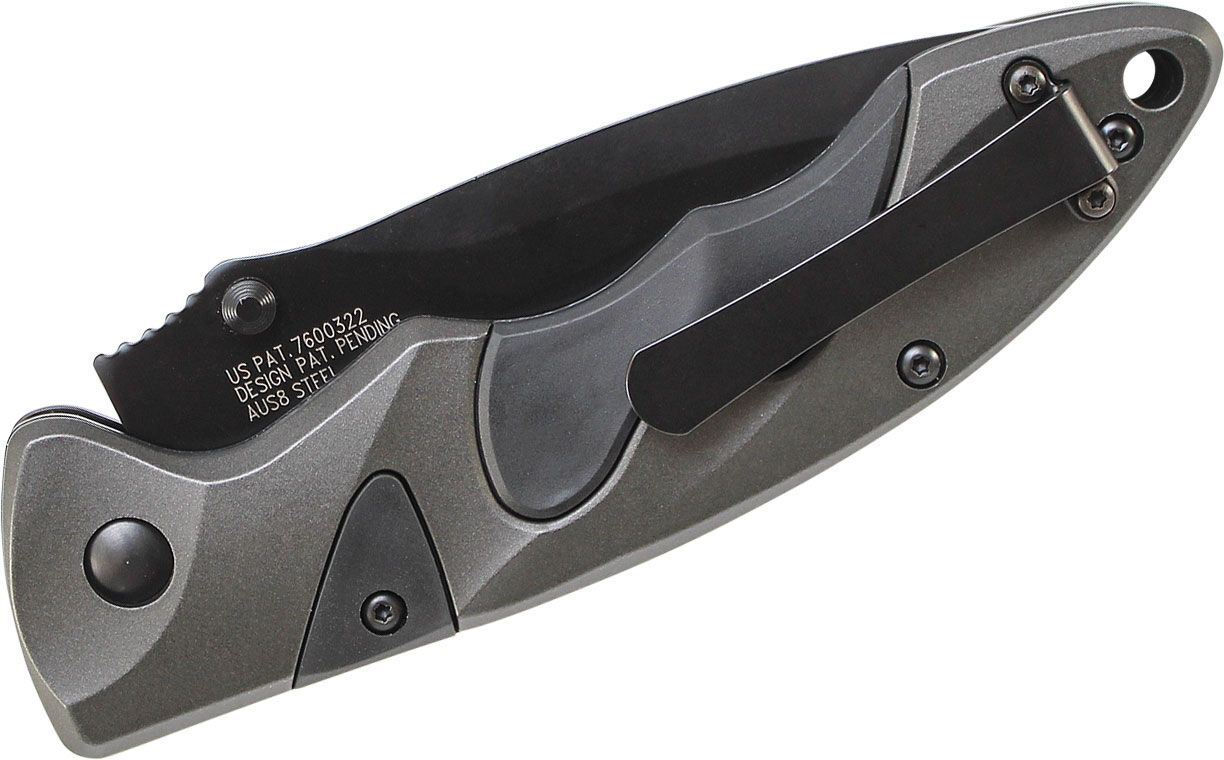 Het veelzijdige vouwmes van Schrade heeft een lemmet van Japans staal AUS-8 met een zwarte afwerking en opent met behulp van tweezijdige duimstuds, beveiligd door een Back Lock. Het handvat is van grijs-zwart aluminium met een riemclip.
