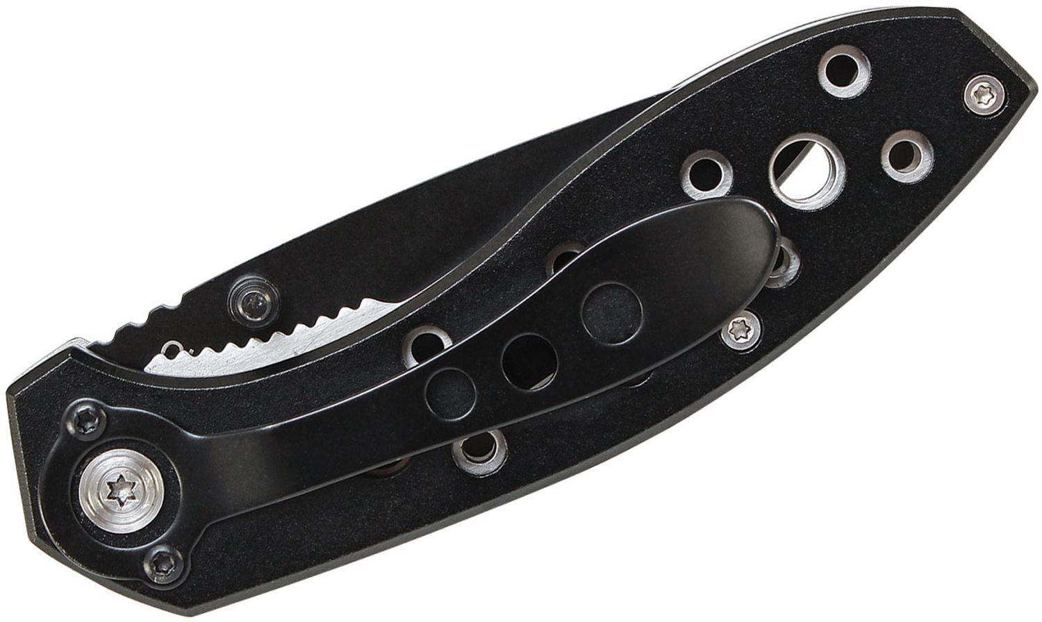 De Smith & Wesson Black Drop Point is een tweehands vouwzakmes met een zwart, glad lemmet van roestvrij staal 7Cr17MoV in Drop Point-vorm, met een Liner Lock. Het mes opent met de duim tegen de duimstud op het lemmet. Het heeft een zwart, geskeletteerd en lichtgewicht handvat van roestvrij staal met een zakclip.