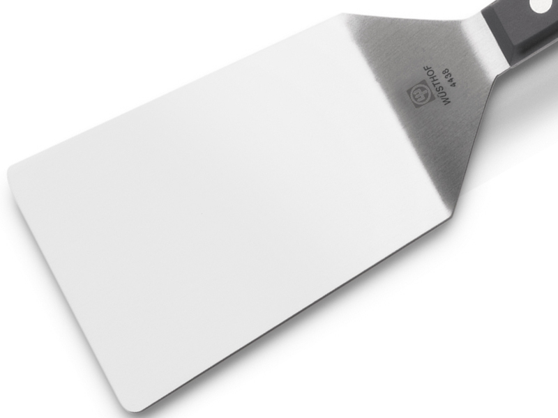 De Wüsthof GOURMET spatel met een breed lemmet van 12 cm is ideaal voor gerechten die in de pan worden bereid, perfect voor het serveren en portioneren van lasagne. Het handvat is drievoudig geklonken, met een volledig metalen kern en gemaakt van zwart kunststof.