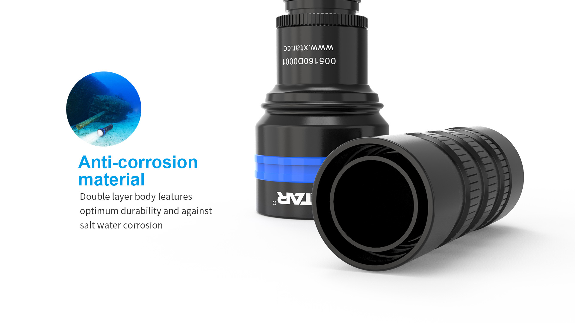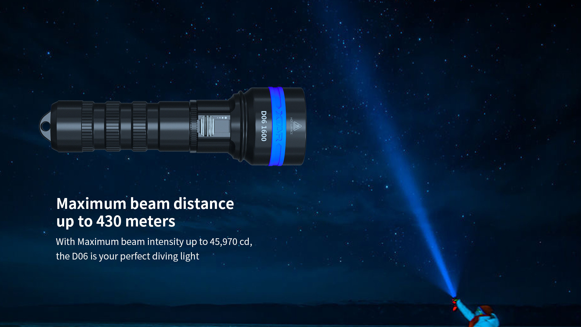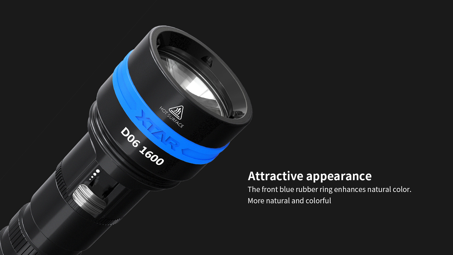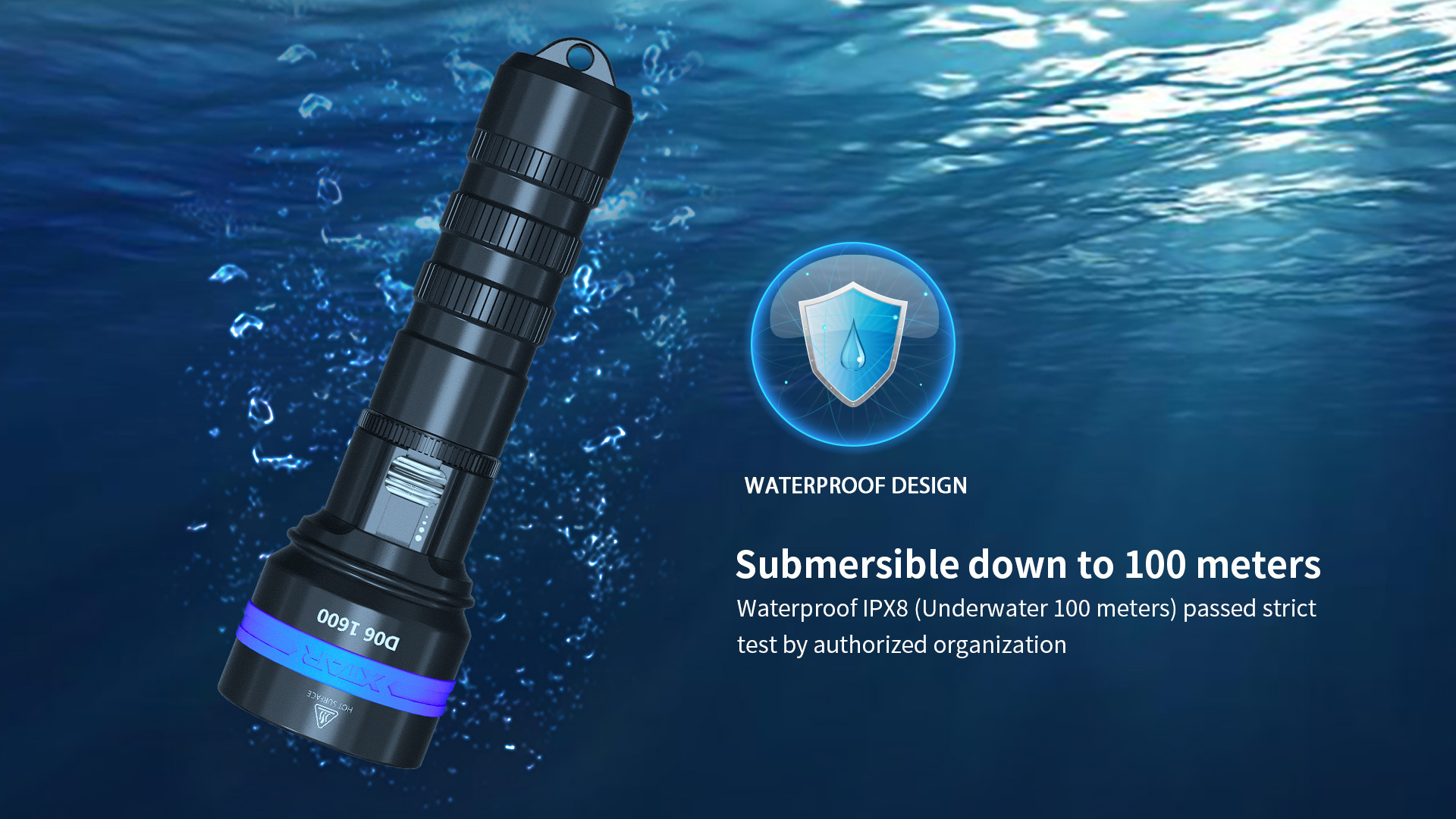 Compacte en krachtige duiklamp die ook op het land zijn mannetje staat. De lamp met diepe reflector is uitgerust met een Cree XHP35 D4 LED met een maximaal vermogen van 1600 lumen en een koele witte lichtkleur.
