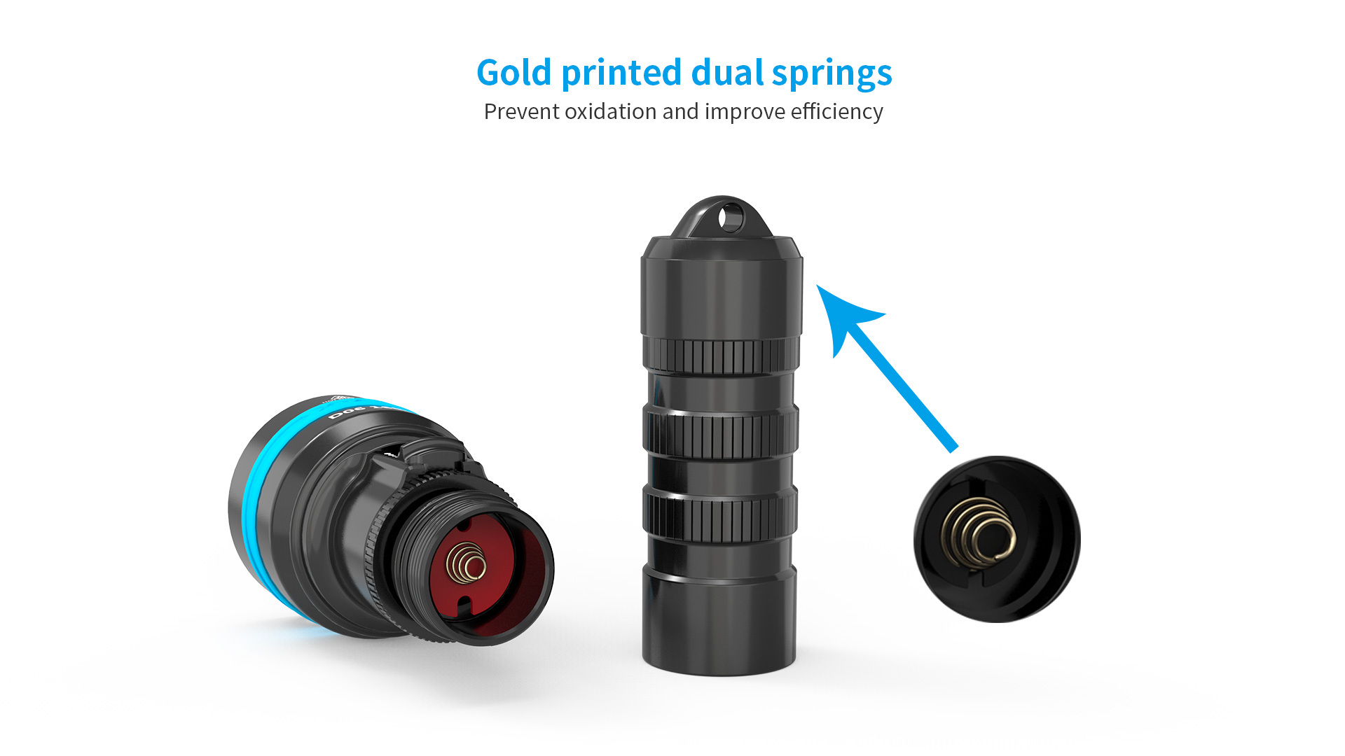 - Uitstekende voedingsvariabiliteit: 1x 18650 / 2x CR123A / 2x 16340